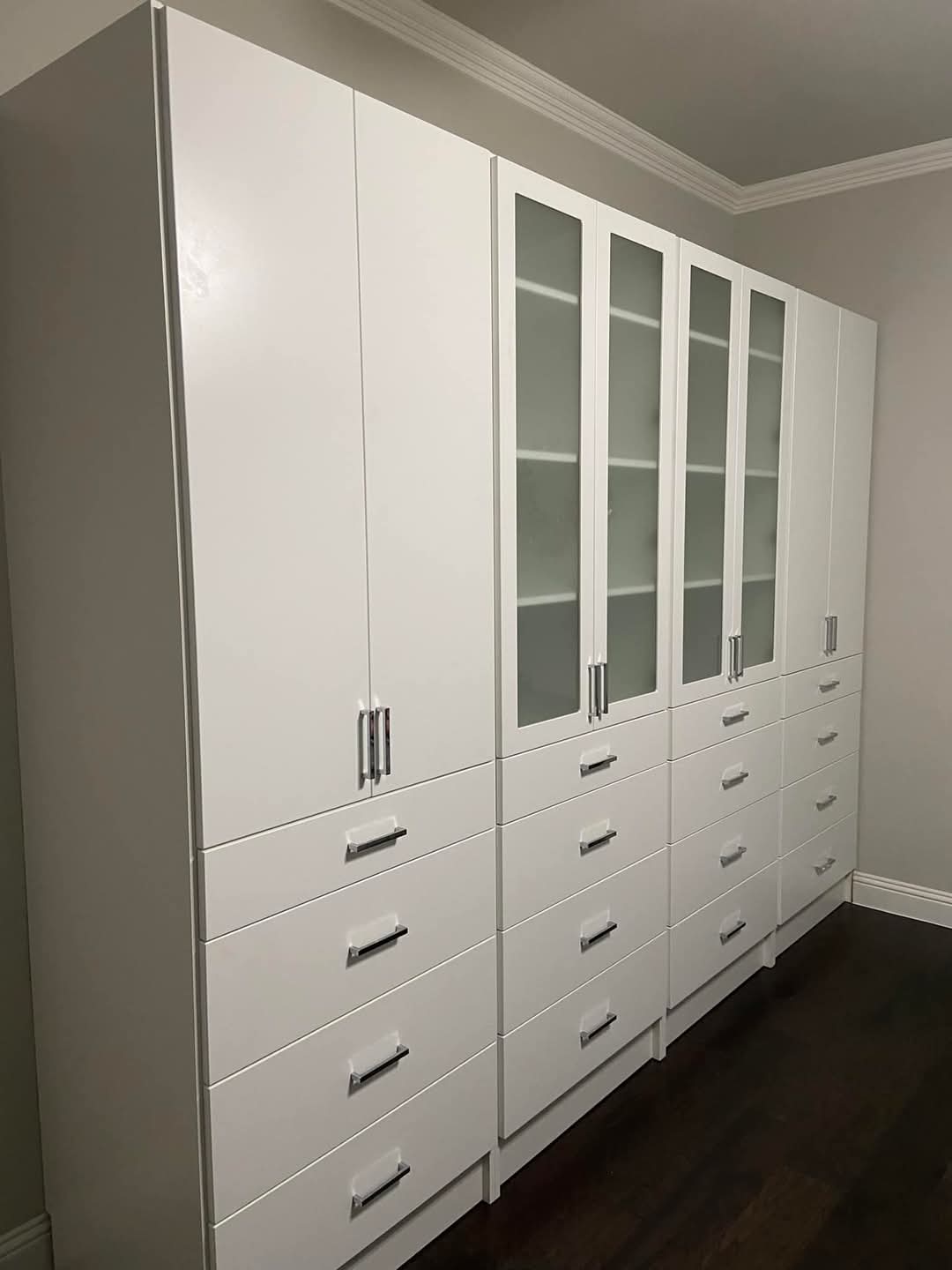 White, Modern Glass Doors, Polished Chrome